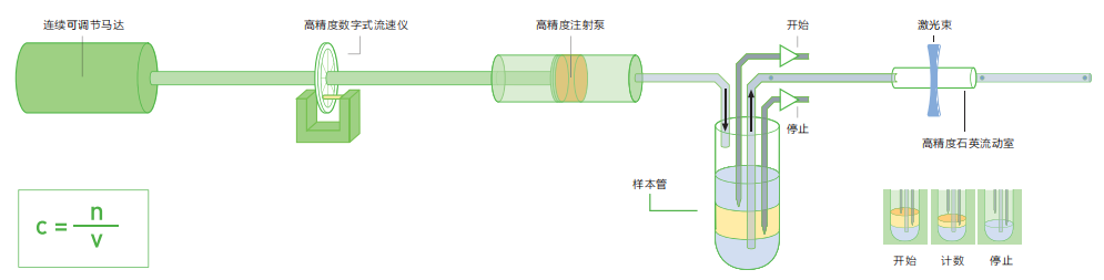 CyFlow® Cube 6采用定體積細胞絕對計數方法(TVAC)對所有顆粒或細胞的濃度進行測定。這種先進的專利技術完全基于絕對計數來實現,即:顆粒濃度(C)是給定體積(V)內的細胞數量(N),C= N/V。給定體積(V)是在已知直徑的的樣品管內兩個電極之間的距離或者控制樣品速度的體積進行測量。