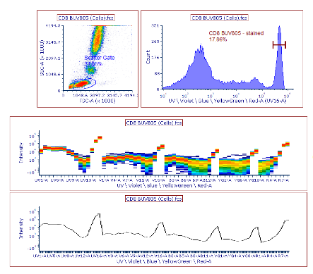 Windows? CyView?軟件可以完成儀器控制、數據分析的各種功能,這些功能包括數據的實時采集、實時或離線數據分析、實時或離線的熒光補償等功能。該軟件可自由組合不同的參數設置界面和數據處理界面,便于不同應用程序之間完成切換。該軟件可自由組合不同的參數設置界面和數據處理界面,便于不同應用程序之間完成切換。CyView?被用于免疫學、微生物學、細胞周期分析、DNA定量、倍性分析等所有應用領域。檢測數據可以流式細胞儀標準文件FCS格式存儲,以方便其他第三方分析軟件進行數據處理。CyView?一個獨特的功能是,在進行分析染料的同時,對熒光的光譜重疊進行數字形式的在線/離線顏色串擾補償。N色軟件補償算法允許在任何參數之間進行串擾校正,而不需要重新跑樣。