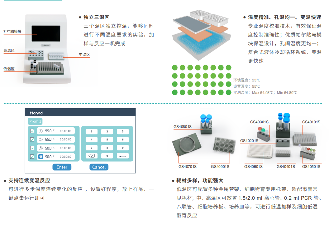 中溫區:可設置溫度范圍為 8~99.9℃,用于試劑樣品的解凍、酶切實驗、熱激反應及逆轉錄類連續變溫反應等 。