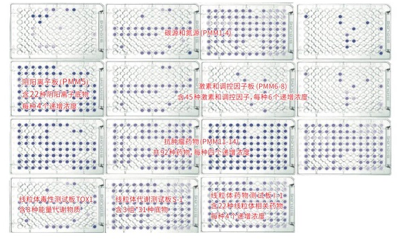 PMM哺乳動物細胞表型,高通量測定哺乳動物細胞常見的代謝表型,包括4塊碳源和氮源能量代謝板、1塊陰陽離子板、3塊激素和調(diào)控因子板、4塊抗腫瘤藥物板及3塊線粒板等15塊微孔板,近1500種表型。