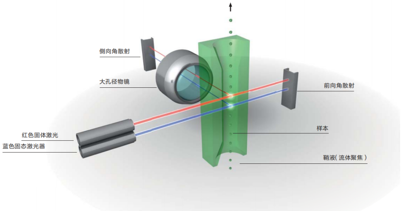 Sysmex-Partec生產的CyFlow ® Cube 6高精度石英流動室運用了其近50年納米級液流方面的經驗與技術。其核心技術是納米/微米級顆粒(范圍跨度涵蓋100nm至100μm)在高速流經流動室時,通過高壓鞘液的包繞,準確、穩定、連續地通過各個激光的光斑中心。被激發的熒光信號通過光膠耦合下的大孔徑物鏡被最大程度地接收。